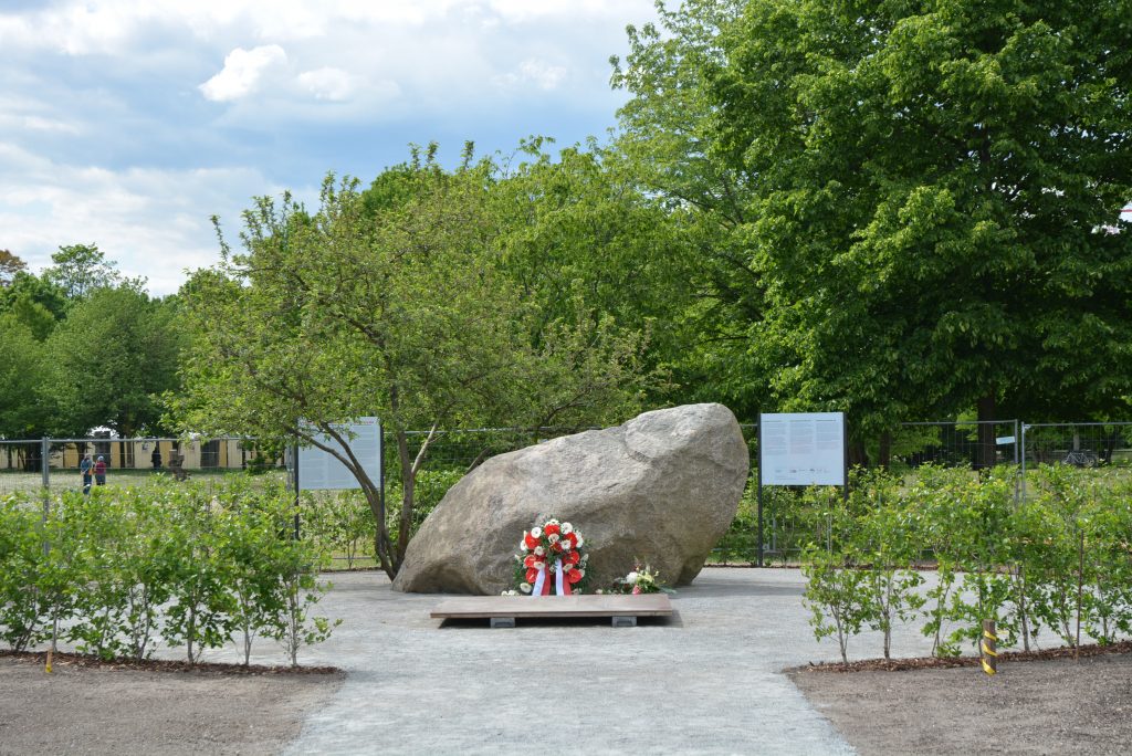 Es ist ein so einfacher wie nobler Gedenkort entstanden, der zu Herzen geht. Die ersten Blumen konnte der Geschäftsträger a. i. der Republik Polen in der Bundesrepublik Deutschland, Herr Jan Tombinski, am 08. Mai 2025 niederlegen.